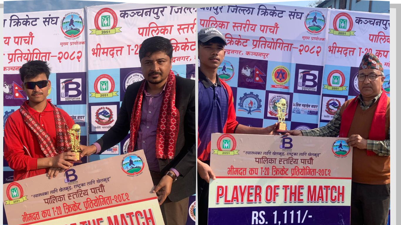 महेन्द्रनगर । महेन्द्रनगर स्थित कवर्डहलको खेल मैदानमा जारी पाचौँ भीमदत्त कप क्रिकेट प्रतियोगितामा बेलौरी र पुनर्वास नगरपालिका विजयी भएका छन ।