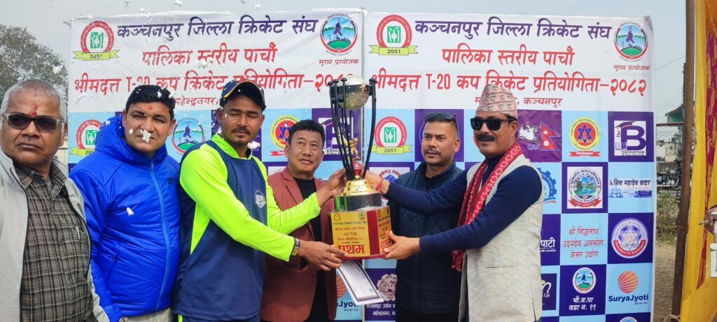 महेन्द्रनगर । पाचौँ भीमदत्त कप टि–२० क्रिकेट प्रतियोगिताको उपाधी दोधारा चाँदनी नगरपालिकाले हात पारेको छ ।