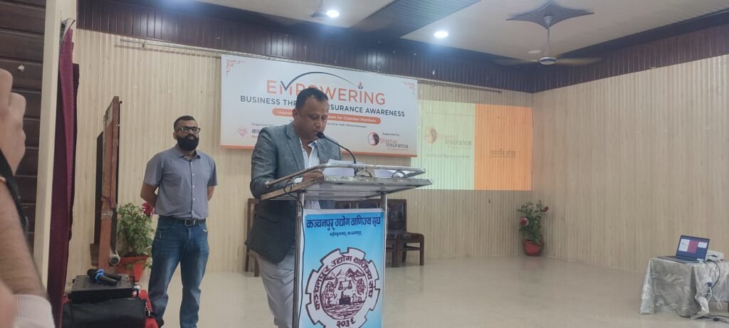 “संघले उद्योगि व्यवसायीहरुलाई बीमाको महत्व,प्रक्रिया र फाइदाका बारेमा जानकारी गराउने उदेश्यले कार्यक्रमको आयोजना गरेका हो ।” उहाँले भन्नुभयो–“अझै पनि उद्योगी व्यवसायीहरुमा बीमाप्रति पर्याप्त जानकारी र सचेतनाको अभाव रहेको छ ।” उहाँले बीमा खर्च नभई भविष्यको सुरक्षा र स्थायित्वको लागि गरिने लगानी भएको बताउनुभयो । उहाँले व्यवसायलाई सुरक्षित बनाउन कार्यक्रमबाट प्राप्त जानकारीलाई व्यवहारमा उतार्दै आफ्नो उद्योग व्यवसायलाई सुरक्षित बनाउन आग्रह गर्नुभयो । बीमा कम्पनीलाई सेवा अझै सहज,पारदर्शी र विश्वसनीय बनाउने विश्वास समेत व्यक्त गर्नुभयो । संघले पछिल्लो समय व्यवसायि हितमा विभिन्न कार्यक्रमहरु गर्दै आएको छ ।